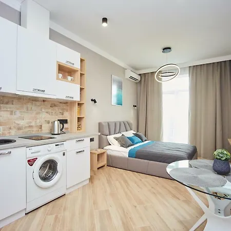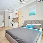 Vanny Pereulock Apartamenty Mikonos位于Primorsky区;入住公寓的客人可以享受大海的风景. 这个住处提供1间卧室和1间浴室. 旅客可以使用私人游泳池,所有的客房都配有微波炉,冷冻机和洗衣机.